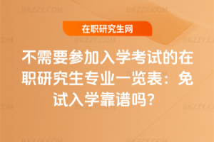 不需要參加入學考試的在職研究生專業多集中在同等學力申碩項目。這些專業涵蓋工商、教育等多領域,入學免試但申碩需考試。該方式有國家政策支持,院校正規招生,靠譜,但只有學位證。可按需參考一覽表選專業。……