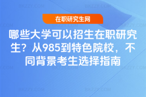 招生在職研究生的院校有985、211及行業特色院校,如清華、北大、復旦、北交大、法大等。985適配本科與工作優秀者,211適合基礎薄弱求穩的考生,行業特色院校則滿足行業深耕且求專業對口的人群。選校要核查資質、匹配授課方式、核實學制學費。……