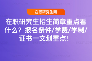 在職研究生招生簡章重點看報名條件,包含學歷、工作年限及專業背景要求,決定能否報考;學費標準,需關注總額、明細及繳費方式,考量經濟投入;學制安排,留意時長、彈性空間及授課方式,規劃時間成本;證書效力,明確證書類型、獲取條件及與全日制證書區別,確保學習成果價值!