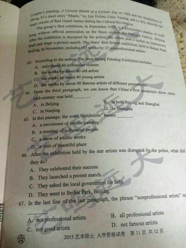 2015年10月在職藝術碩士MFA聯考真題及答案已經公布,詳情如下: