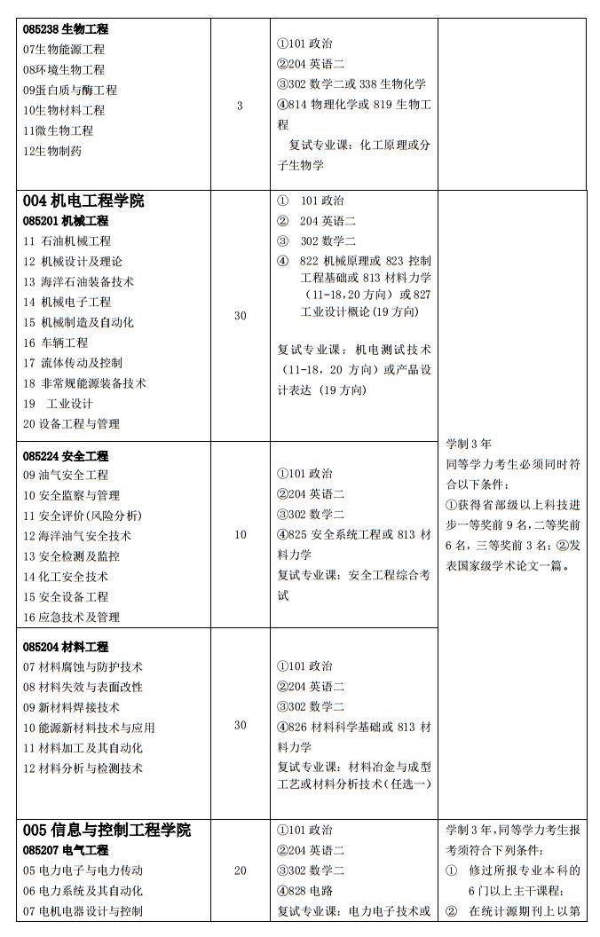 2018年中國石油大學(華東)非全日制研究生專業目錄