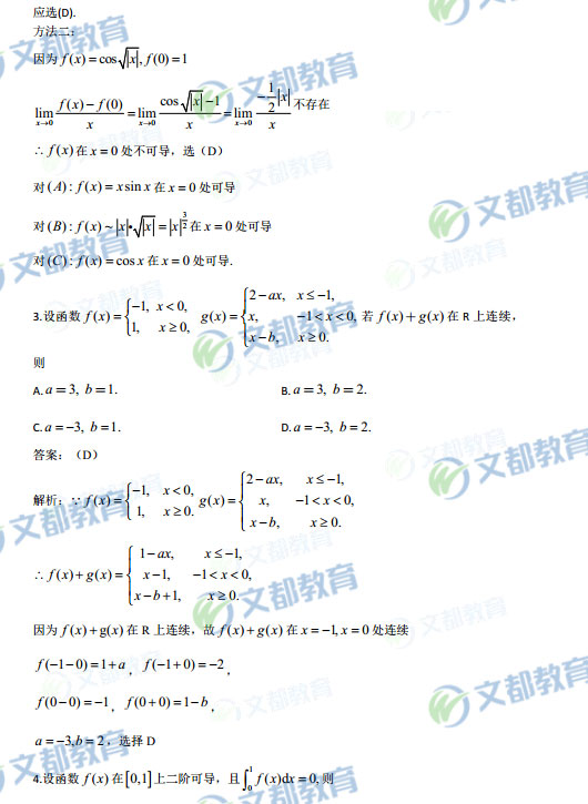 2018年非全日制研究生數學二真題及參考答案(完整版)
