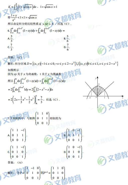 2018年非全日制研究生全國統一初試考試數學二真題及參考答案(完整版),詳細內容如下: