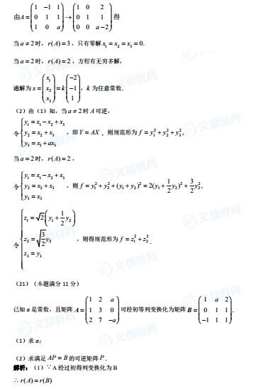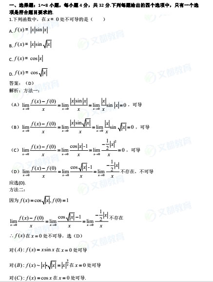 2018年非全日制研究生全國統一初試考試數學一真題及參考答案(完整版),詳細內容如下: