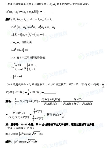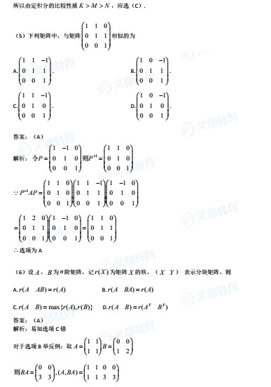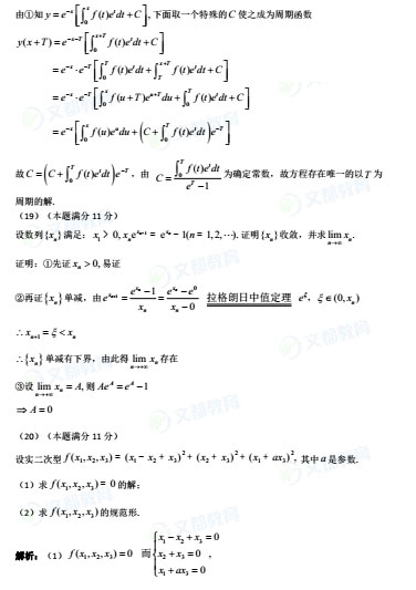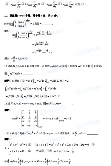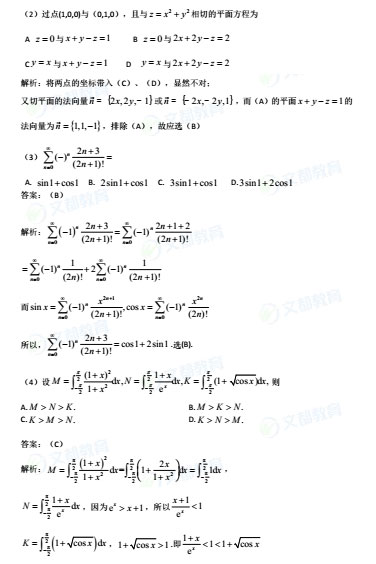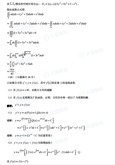 2018年非全日制研究生數學一真題及參考答案(完整版)