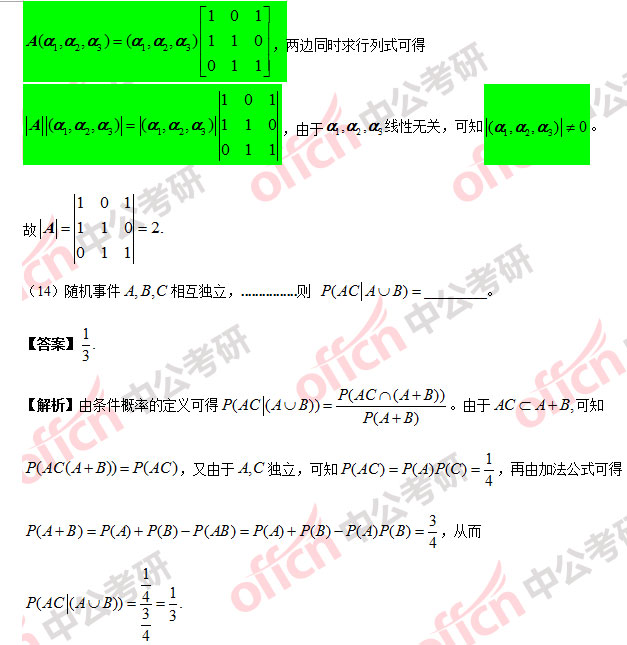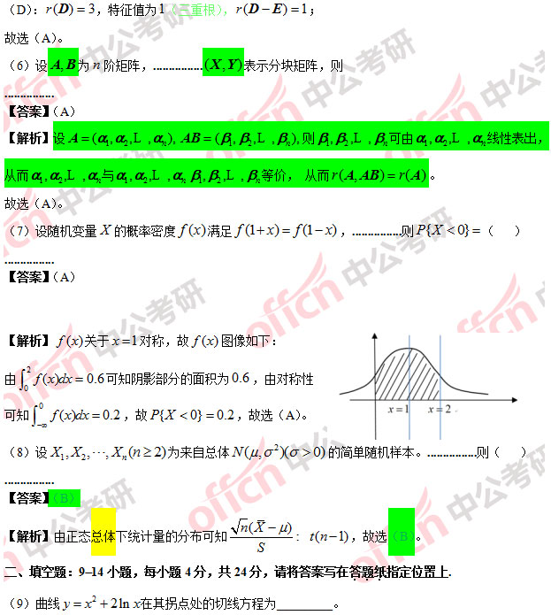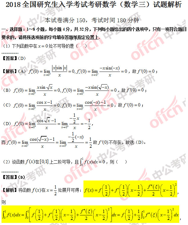 2018年非全日制研究生全國統一初試考試數學三真題及參考答案(完整版),詳細內容如下: