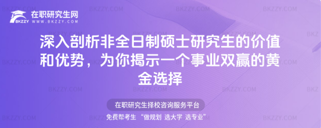 總而言之,非全日制碩士研究生作為職場人士事業發展的捷徑,憑借其靈活的學習方式、挑戰與機遇并存的考試體系、多元化的專業選擇、簡便的報名流程以及多樣化的職業選擇,正成為事業雙贏的黃金選擇。對于渴望在職場上脫穎而出的你,選擇非全日制碩士研究生,或許正是開啟新事業篇章的關鍵一步。