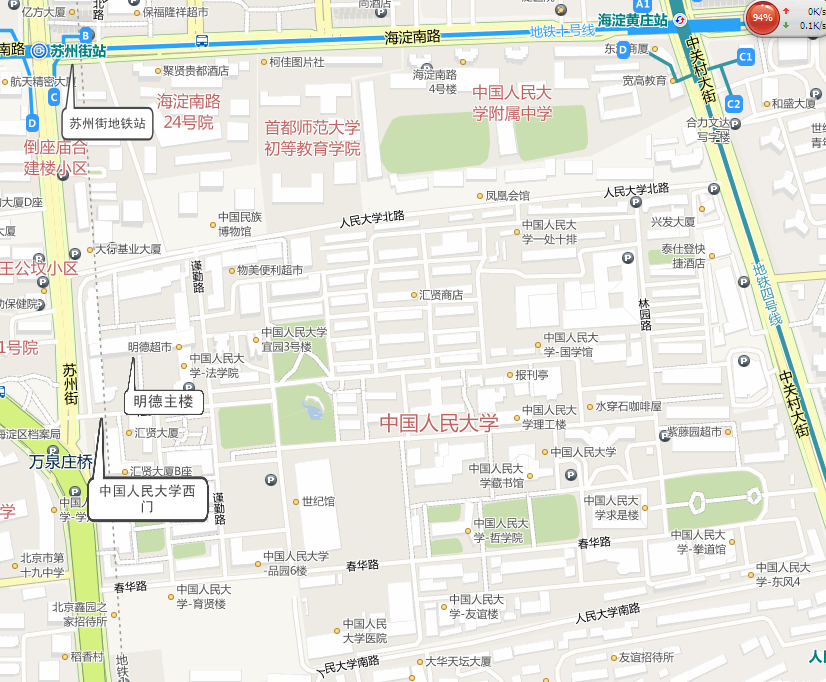 萬泉河站(中國人民大學西門):26、361、367、944、944支、運通110、運通116、374、482、634、651、704、817、968、特5、運通108502、639、640 光華路口東下車對面(學校南門)