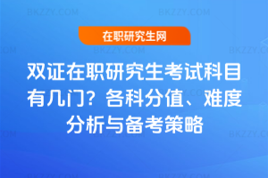 雙證在職研究生考試科目分兩類:管理類聯(lián)考專業(yè)考2門,含管理類聯(lián)考綜合能力(200分,數(shù)學(xué)75分、邏輯60分、寫作65分)和英語(yǔ)二(100分),難度中等,管綜題量大、英語(yǔ)二介于四六級(jí)間;非管理類專業(yè)考3-4門,含思政、外國(guó)語(yǔ)(各100分)及業(yè)務(wù)課(150分/300分),業(yè)務(wù)課難度依專業(yè)背景定。備考建議用碎片化時(shí)間,管理類抓數(shù)學(xué)邏輯,非管理類重業(yè)務(wù)課教材與真題。……