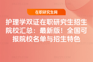 全國(guó)多所院校招收護(hù)理學(xué)雙證在職研究生,涵蓋北京協(xié)和醫(yī)學(xué)院、上海交大醫(yī)學(xué)院等頂尖醫(yī)科大學(xué)及武漢大學(xué)、四川大學(xué)等綜合類大學(xué),分布全國(guó)主要地域。招生方向含重癥護(hù)理、護(hù)理管理、社區(qū)護(hù)理等,學(xué)制2.5-3年,學(xué)費(fèi)5.5萬-8.5萬,多為周末面授+線上課程。可按職業(yè)方向與地域選擇,報(bào)考前需確認(rèn)招生資質(zhì)及材料要求。……