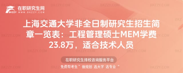 上海交通大學非全日制研究生招生簡章一覽表為有意深造的工程技術人員提供了權威、詳盡的指引。對于符合報考條件、期望通過系統(tǒng)學習實現(xiàn)技術與管理能力雙重突破的職場人士,2026級MEM項目是一個值得重點關注的優(yōu)質(zhì)選擇。若您希望進一步了解該項目課程細節(jié)、備考策略或個性化報考建議,可直接聯(lián)系網(wǎng)站在線客服,獲取專業(yè)咨詢服務。