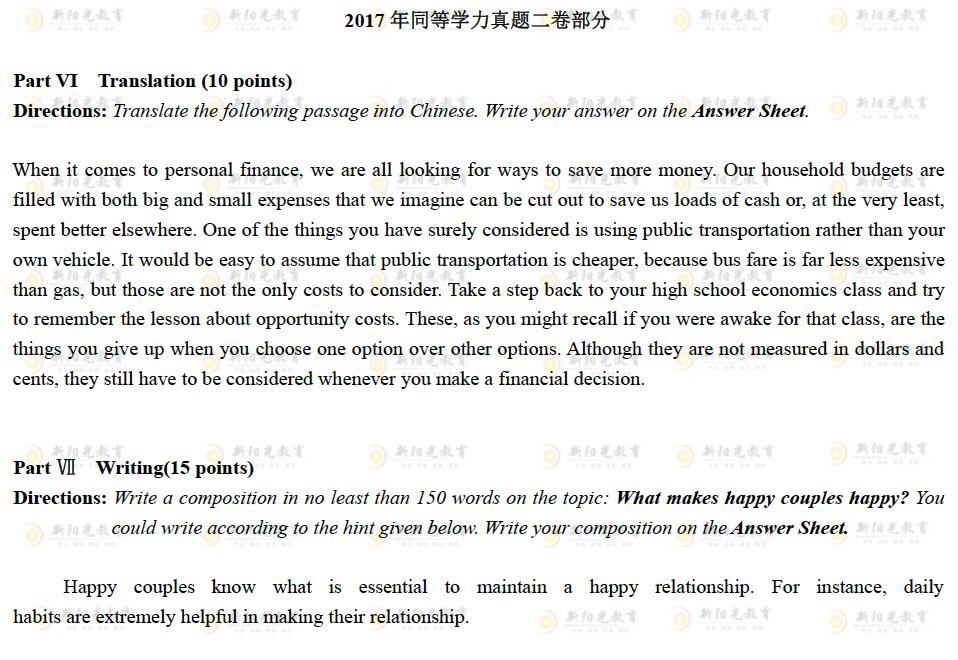 2017年同等學力申碩統考英語真題(完整版)